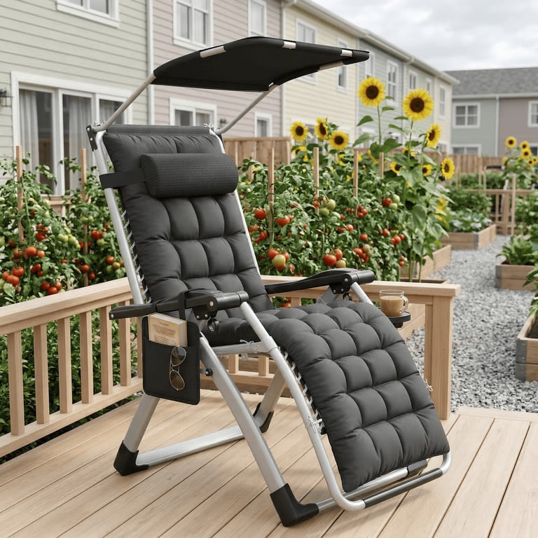 Our premium folding garden lounge chair features a heavy-duty powder-coated steel frame, infinite recline adjustment, and weather-resistant cushioning, with optional UV-protective sun canopy. It folds compact for easy storage and transport, perfect for patios, poolsides, and camping, supporting up to 160kg for stable, long-lasting use.